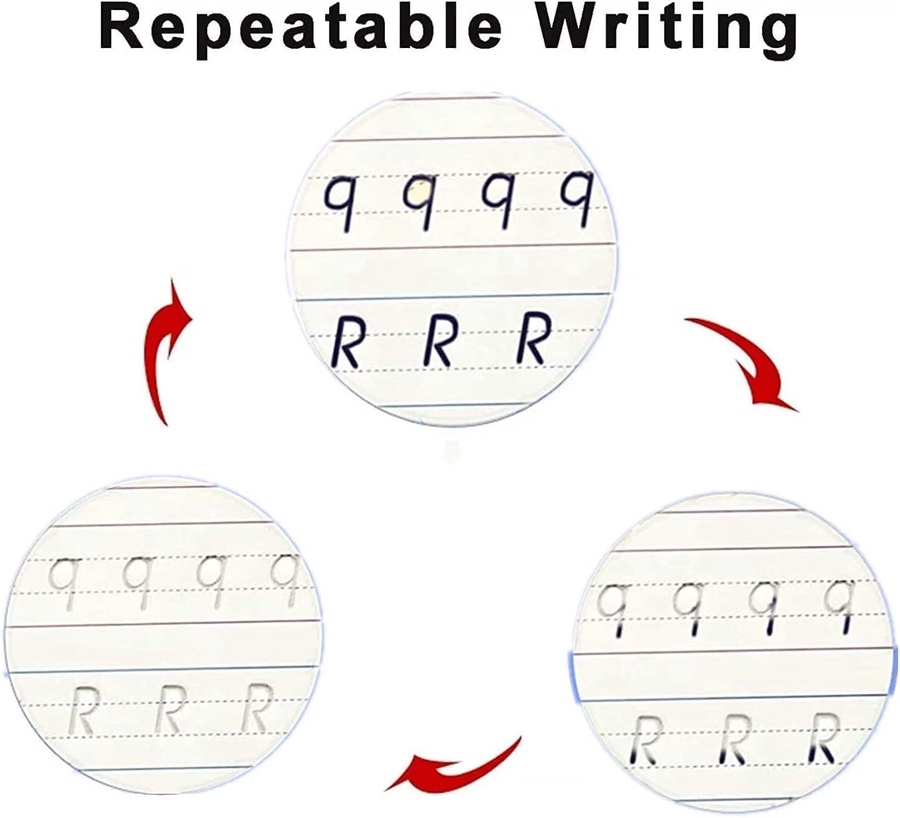 ج.مخلّي ابنك يتعلّم الخط والحساب بالرسم والمتعة! حبر سحري بيختفي لوحده ويرجع يكرّر التمرين قد ما يحب—من غير مسح ولا هدر ورق. ✍️🔁 💡 مميزات المنتج: 1️⃣المميزات الأبرز حبر سحري يختفي تلقائيًا بعد فترة، علشان الطفل يعيد التمرين مرات كتير ويثبت المعلومة. 🪄🔁 أخاديد 3D مدمجة ترشد إيد الطفل على شكل الخط الصحيح وتساعده يكتب بثقة. 🧭✍️ ورق سميك ومتين مقاوم للتسريب والتجعّد—مريح للكتابة ومناسب للاستخدام اليومي. 📘✅ تعلّم شامل: حروف، أرقام، عمليات حسابية بسيطة، ورسم لتنمية التخيّل والمهارات الحركية الدقيقة. 🔤➕➖🎨 قبضة قلم سيليكون لتصحيح مسكة اليد وتقليل الإجهاد أثناء الكتابة. ✍️🧒 آمن ولطيف: أحبار غير سامة وروائح منخفضة لتجربة آمنة في البيت أو المدرسة. 🛡️ التفاصيل السريعة الفئة العمرية: مناسب تقريبًا من 3–9 سنوات. 👶👧 المقاس: حجم مدمج وسهل الحمل (قريب من A5). 👜 إعادة استخدام: يمكن التدريب عشرات المرات على نفس الصفحات بفضل الحبر المتلاشي. 🔁 المهارات: تحسين الخط، التناسق بين العين واليد، التركيز، والعدّ المبكر. 🧠✨ محتويات الباكدج 📦 مجموعة كراسات تدريب (حروف/أرقام/رياضيات/رسم). قلم سحري + مجموعة ريفيلات (عبوات حبر) + قبضة سيليكون. ✍️🧩